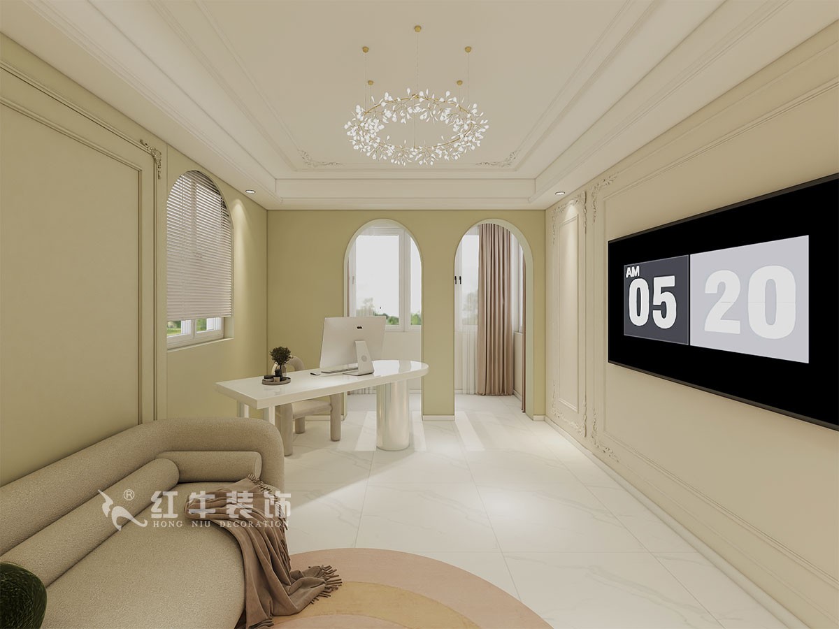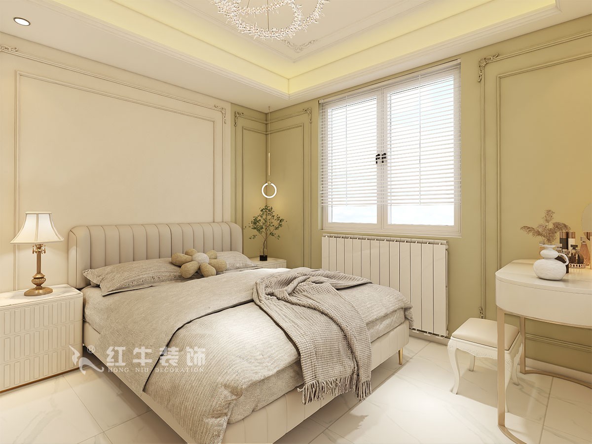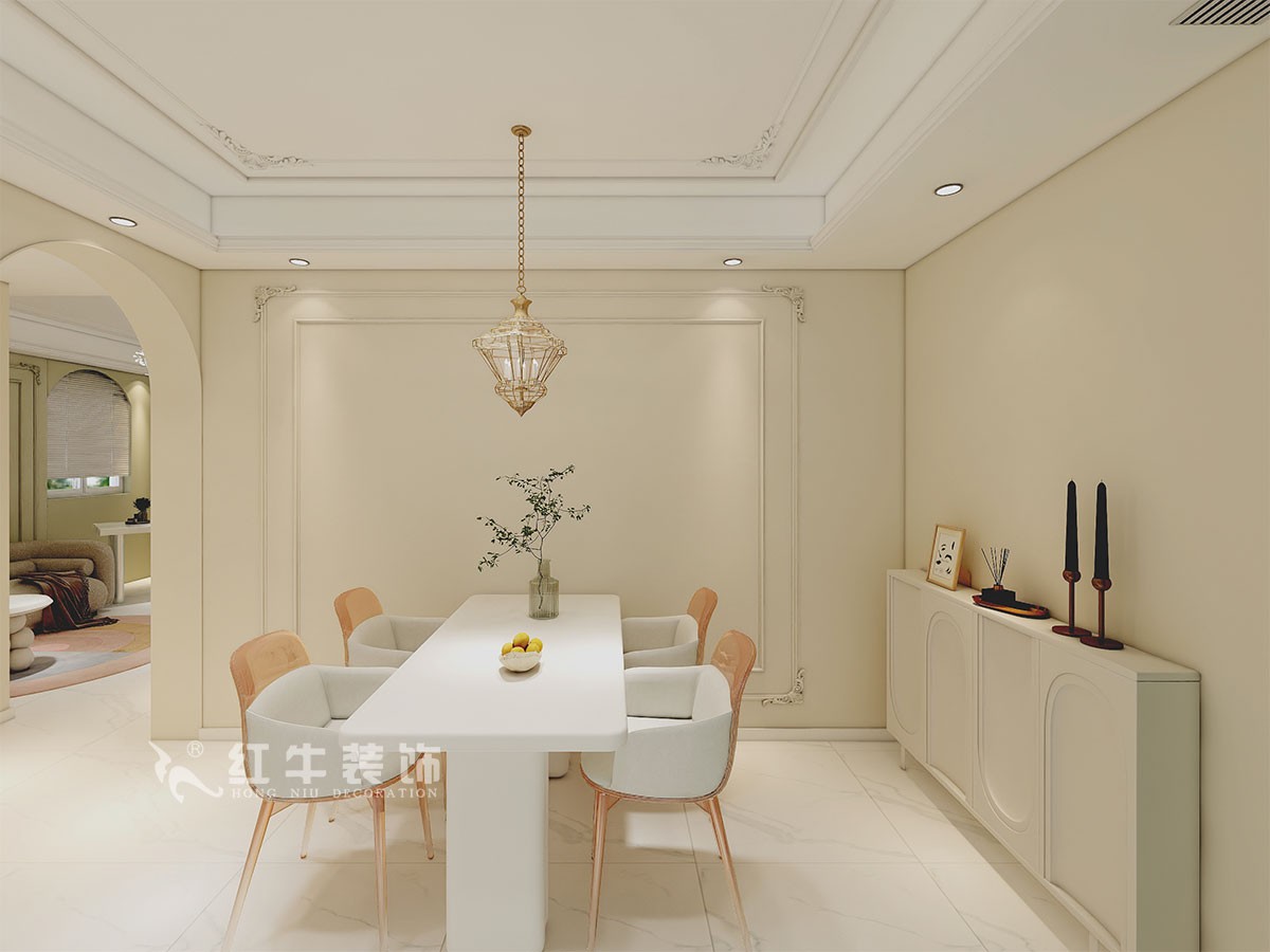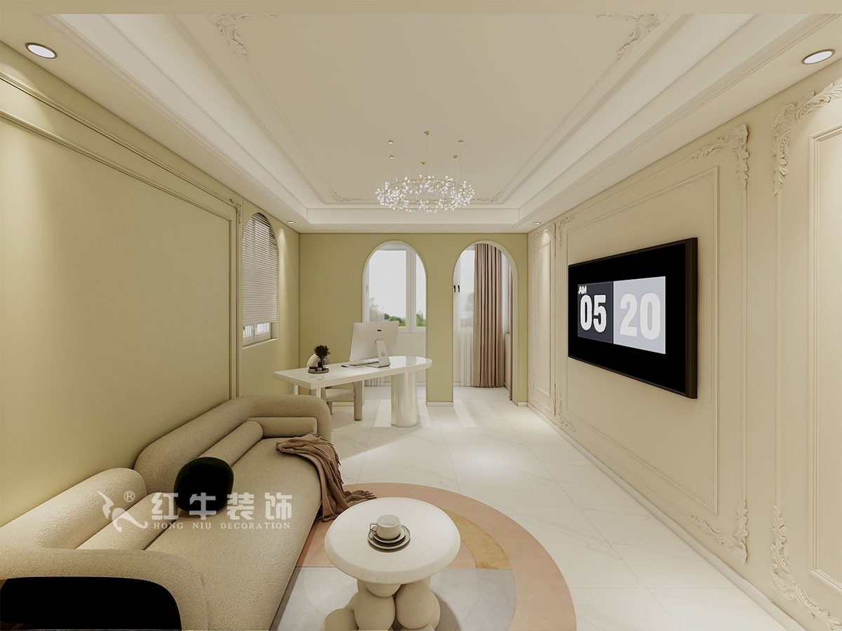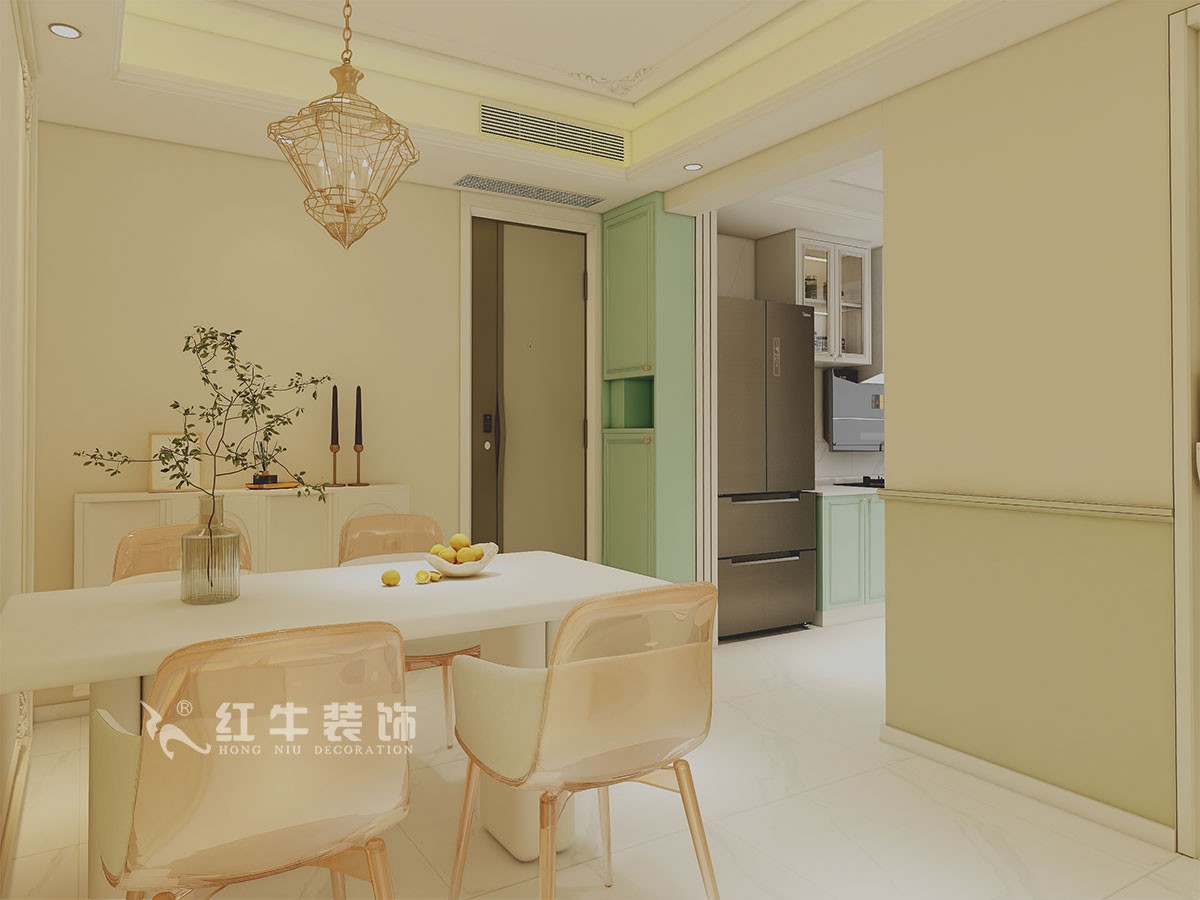 本案是本案客戶女兒回國臨時居住,以法式奶油風(fēng)定義,網(wǎng)紅牛油果綠加上汝窯色,調(diào)節(jié)出歡快溫馨的效果,頂墻面線條增加立體層次感,設(shè)計上背景采用牛油果綠加上暖色的搭配,使空間看起來溫馨自然,利用原結(jié)構(gòu)的特點制作出三個圓弧,交相呼應(yīng)。