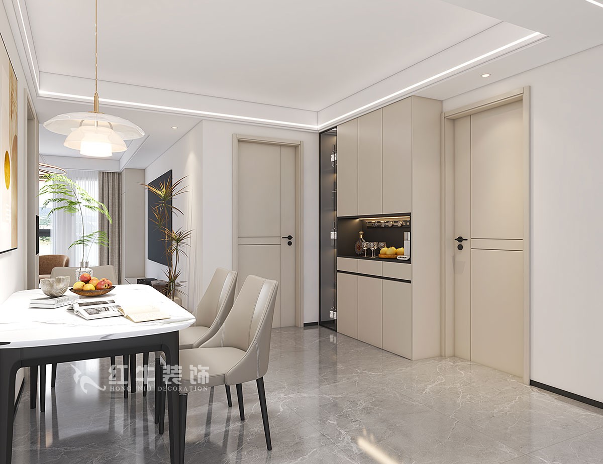 業(yè)主是一對小年輕,作為婚房使用,衛(wèi)生間進(jìn)行了布局調(diào)整,廚房把北陽臺并進(jìn)來,使整個廚房利用率更高。墻體改造,這樣空間更加合理,利用率也比較高。餐廳區(qū)域比較大,做了餐邊柜設(shè)計,滿足了儲物的需求,同時一進(jìn)門正對著作為一個裝飾。利用客廳空間做了一組儲物柜、鞋柜的設(shè)計,客廳不僅布置得美觀,還兼顧了功能性和實用性。