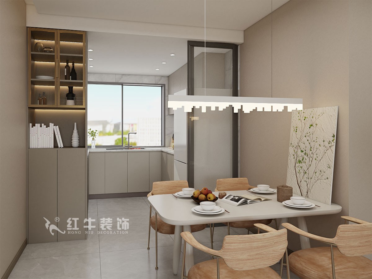 餐廳說(shuō)明:餐邊柜擴(kuò)充了廚房?jī)?chǔ)物的不足,也提升了適合家庭的生活質(zhì)量。