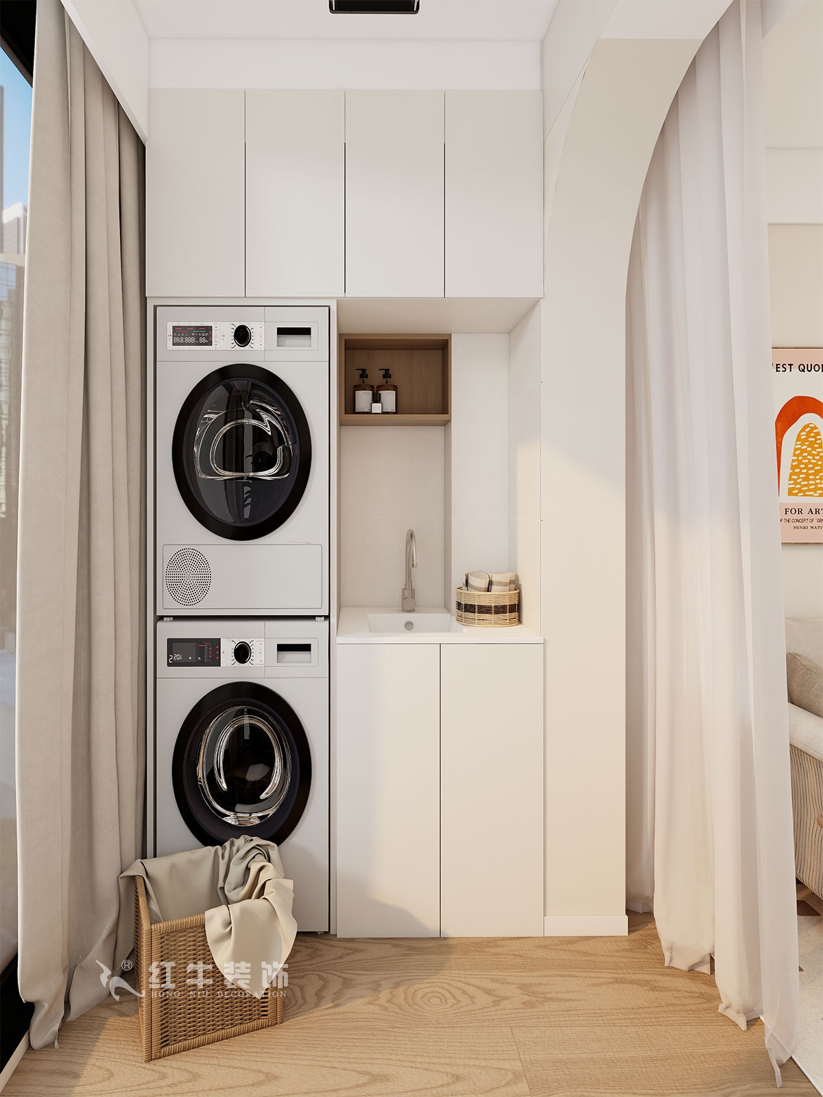 陽臺走主臥,晚上使用洗衣機影響業(yè)主作息時間;