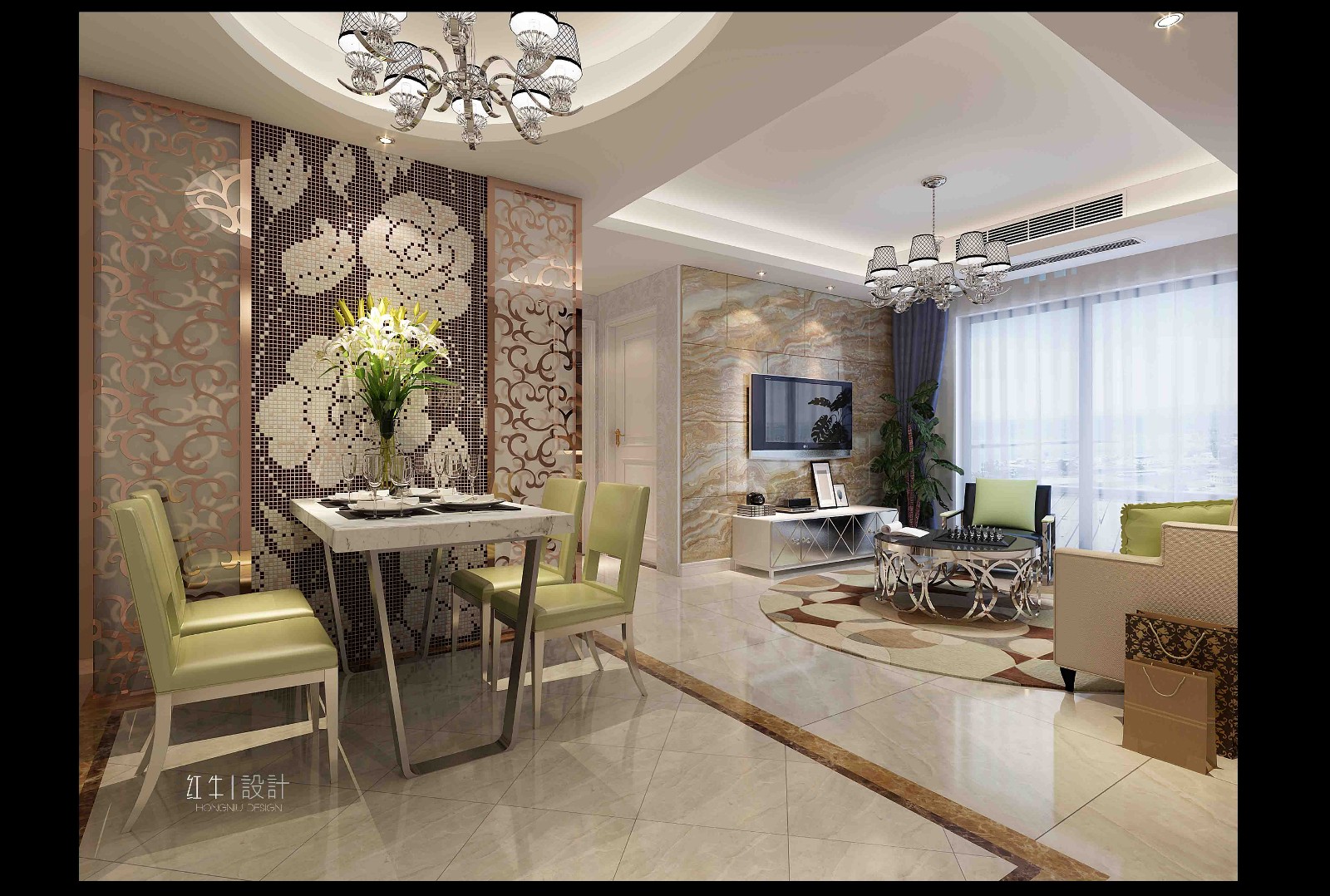 此案為婚房,要求簡潔,大氣,奢華。設(shè)計師通過墻體的改造,把儲藏室和北陽臺改造成小臥室,既增加實(shí)用性,又節(jié)省了空間。因戶型不大。所以設(shè)計師通過質(zhì)感比較強(qiáng)的釉面瓷磚,配以陶瓷馬賽克,地面深淺搭配的造型,和凹凸有質(zhì)的藝術(shù)造型吊頂相搭配,既延伸了空間,又提高了檔次。