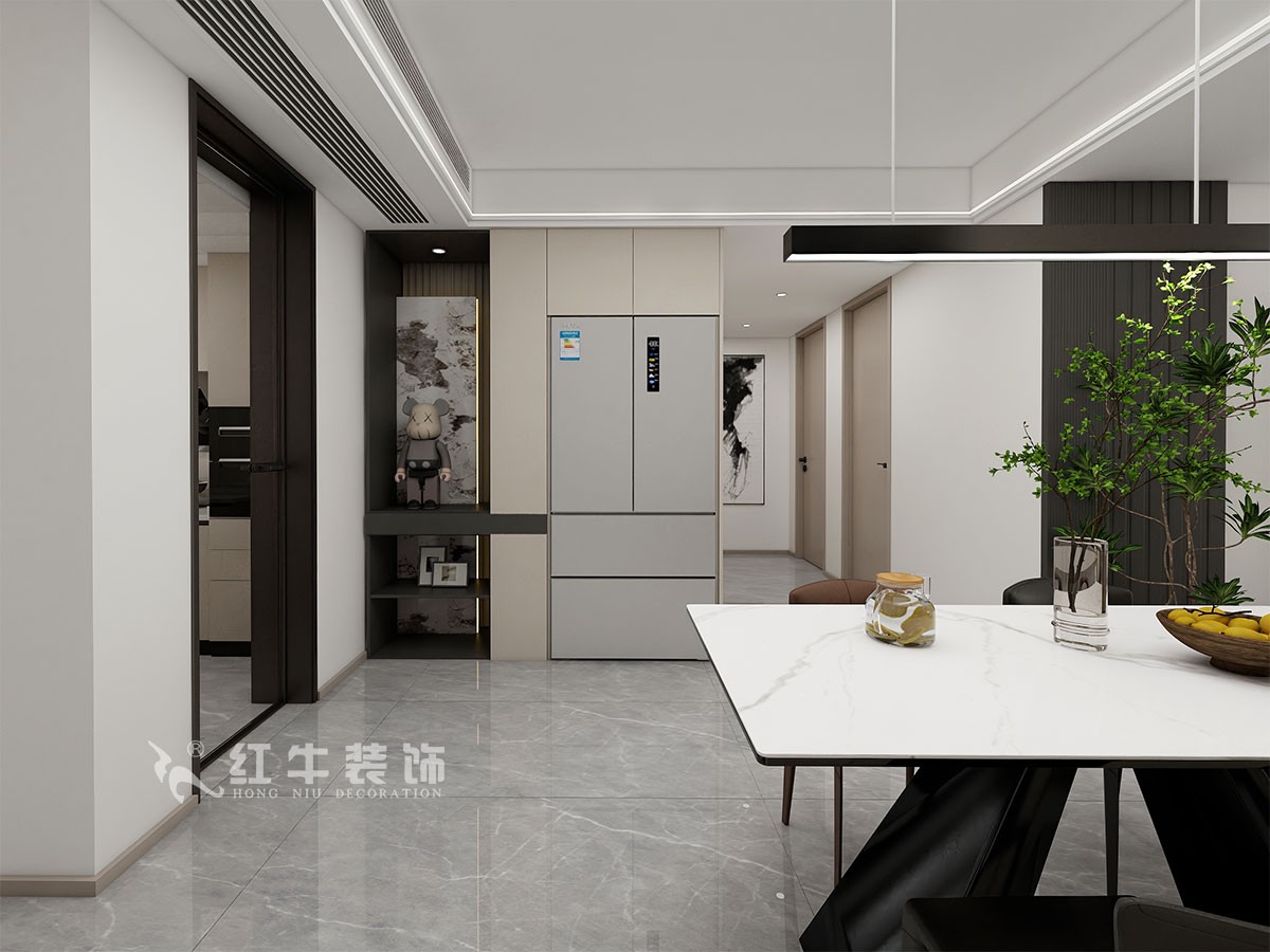 本方案圍繞現(xiàn)代風(fēng)格為主題,沒有繁瑣累贅的線條,鮮有璀璨奢華的元素,卻通過不同色塊之間的相互碰撞,干凈利落地講述了一個關(guān)于家的故事,給家以精致、溫暖的生活氣息。當(dāng)然,除了滿足正常的生活功能外,展現(xiàn)一個家的美貌必不可少。白凈的基底下,柔和的色彩,利落的線條,都讓這里輕松而美好。