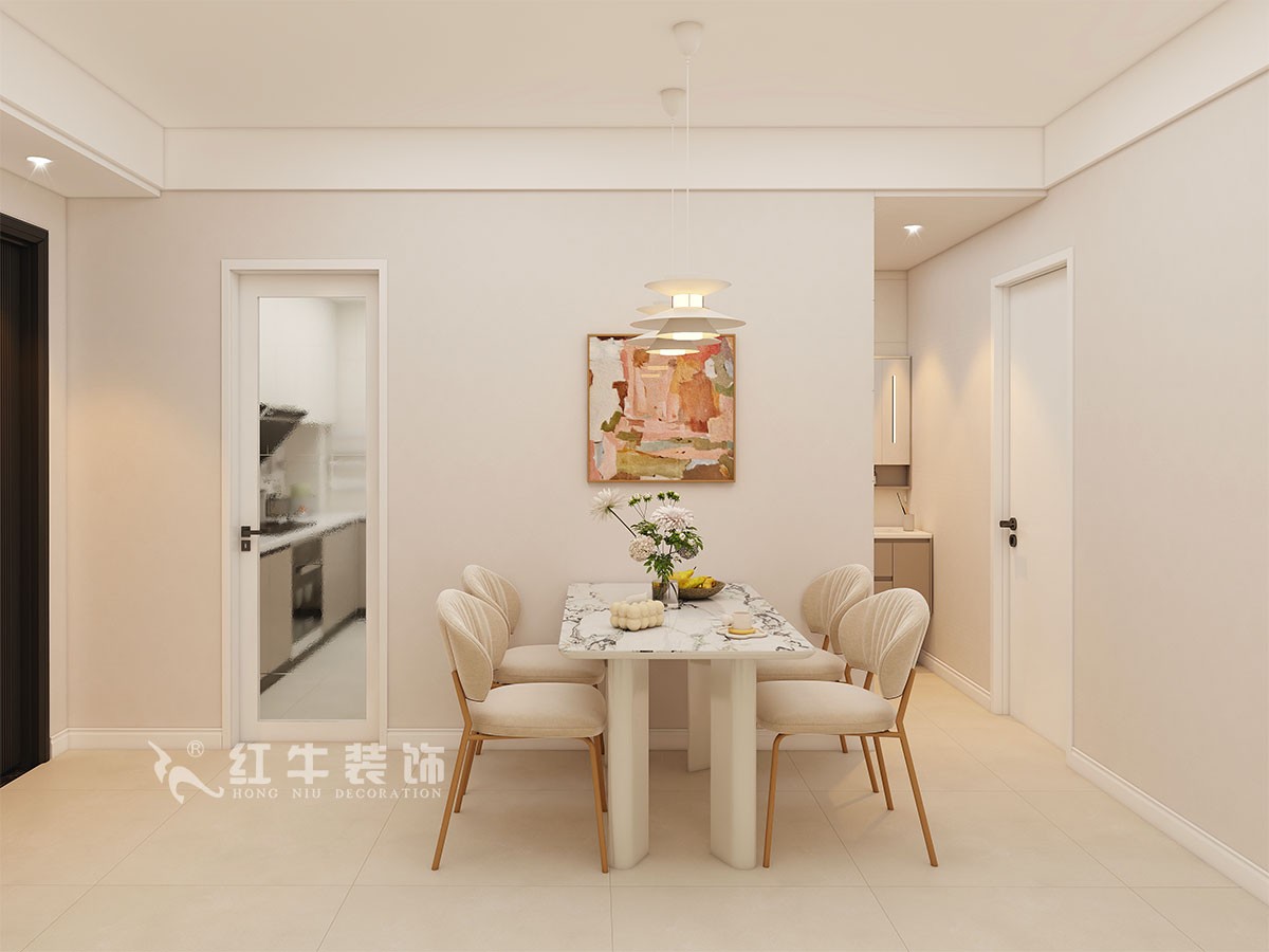 材質(zhì)選擇:地面通鋪柔光磚,墻面使用乳膠漆,選擇線條簡潔的家具,如沙發(fā)、茶幾、餐桌椅等,搭配復(fù)古燈具、裝飾畫和綠植,增添藝術(shù)氣息。