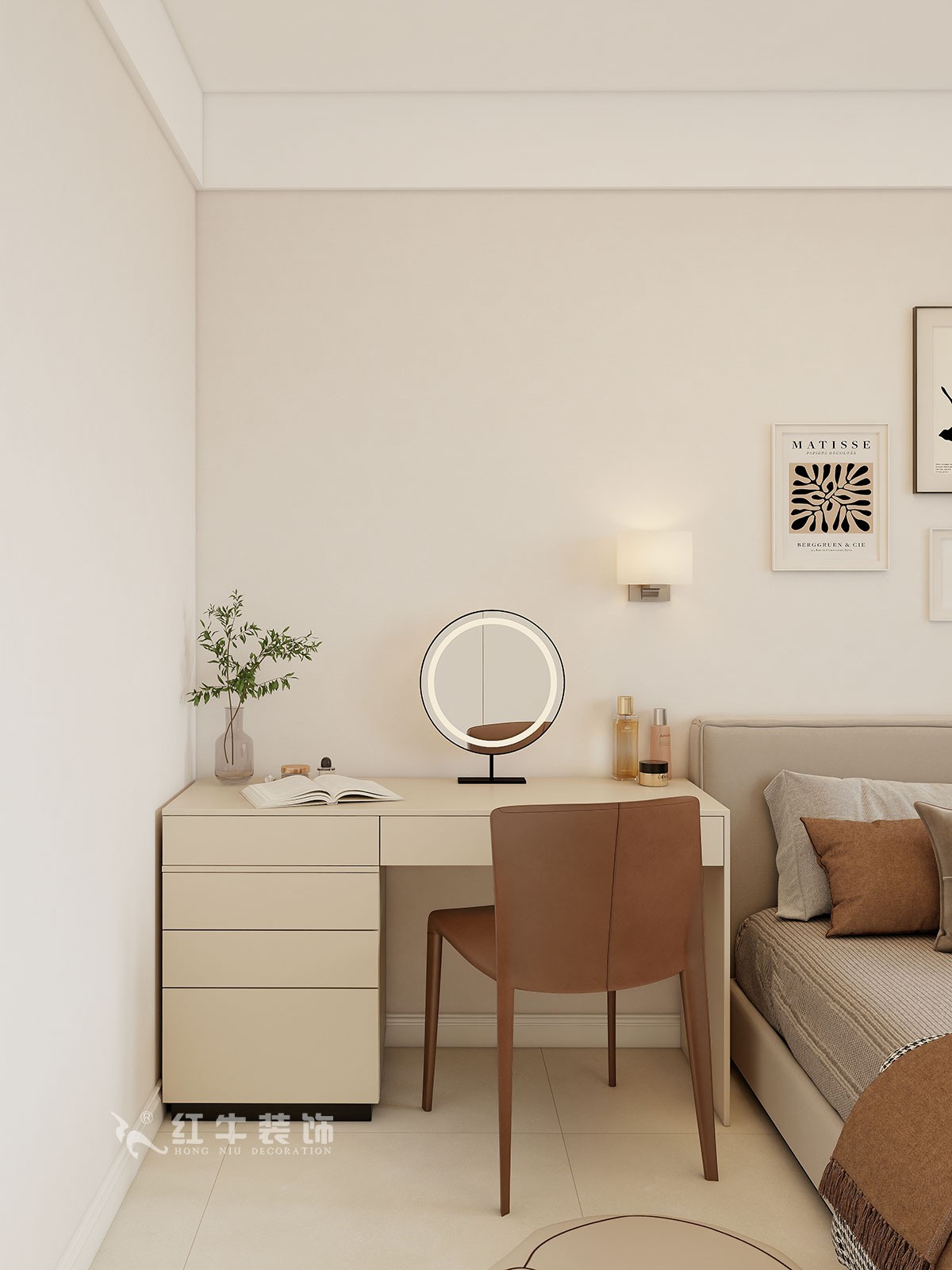 色彩搭配:以暖色調(diào)為主,墻面采用米色、淺咖等柔和色彩,搭配深木色家具,營造氛圍。