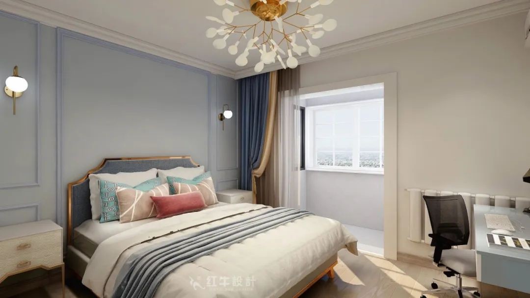 次臥主要給小孩居住,顏色與格調(diào)延續(xù)了客餐廳的風(fēng)格。