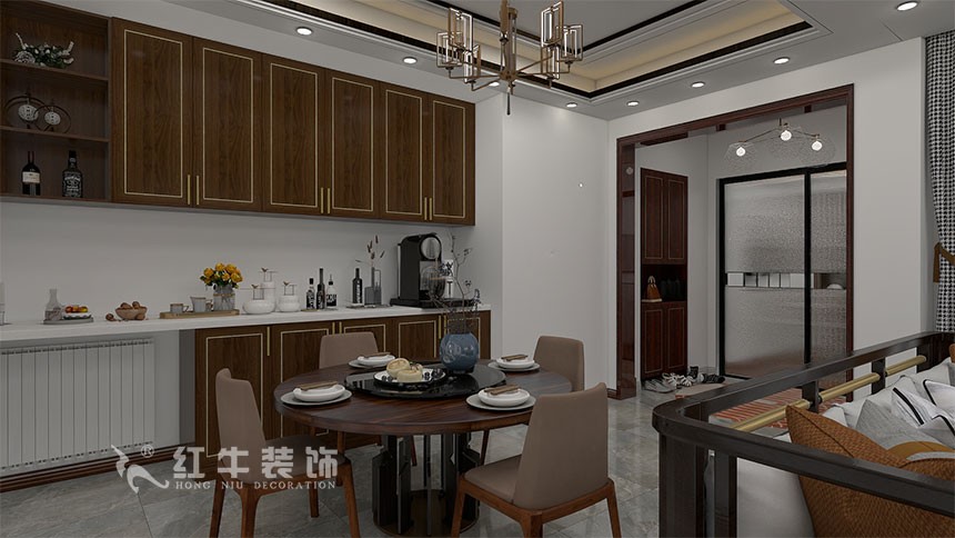 本案是四室兩廳兩衛(wèi)一樓帶院子的戶型三代人居住,因為主要是父母主,風(fēng)格定義是新中式,以現(xiàn)代美感來塑造空間氛圍,時尚與古典相互融合,有內(nèi)有外,內(nèi)外兼修。整體空間做了調(diào)整,打開入戶右邊送的設(shè)備平臺,設(shè)計為書房,平時坐在書房看書的時候,也可以一覽院子里的美景,進(jìn)入大門后,做了一個隔斷分區(qū),分割一個入戶門廳,提高利用率和私密性,主臥室的衛(wèi)生間也做了調(diào)整,改變以前的落地窗,一分為二,衛(wèi)生間的功能/私密性都不影響的情況下,還多了一個儲藏室。出房間也做了調(diào)整,打掉所有的非承重墻,廚房中間做了中島臺,平時可以用作早餐臺逢年過節(jié),大家聚在一起包餃子,其樂融融,生活氣息濃厚。