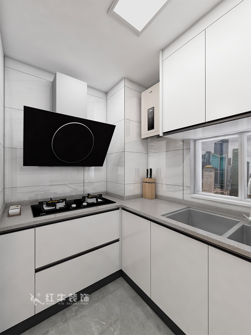 本案設(shè)計(jì)業(yè)主父母自住,卡座設(shè)計(jì)解決沙發(fā)無(wú)法放置的問(wèn)題,增加座位空間,同時(shí)也增加儲(chǔ)物空間。顏色明亮。廚房結(jié)構(gòu)改造一下,解決了客廳可以看見(jiàn)煙機(jī)灶臺(tái)的尷尬。