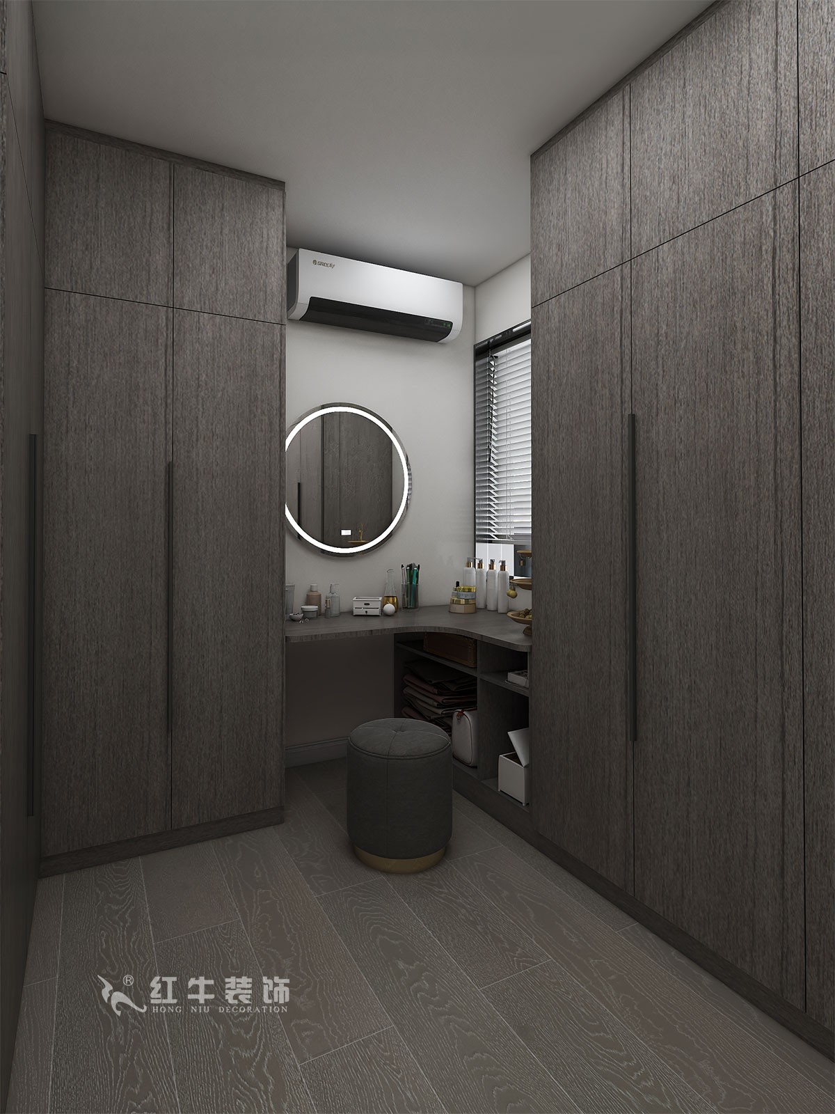 房子就是三房兩廳的戶型,常駐人口就是中年夫妻,對家里的功能需求要求比較高,柜子收納要多且隱蔽。