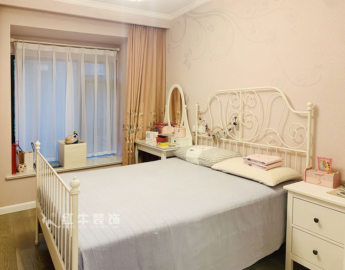 這間是次臥,梳妝臺(tái)是必不可少的家具,它的造型優(yōu)雅、還散發(fā)著一種浪漫氣息。