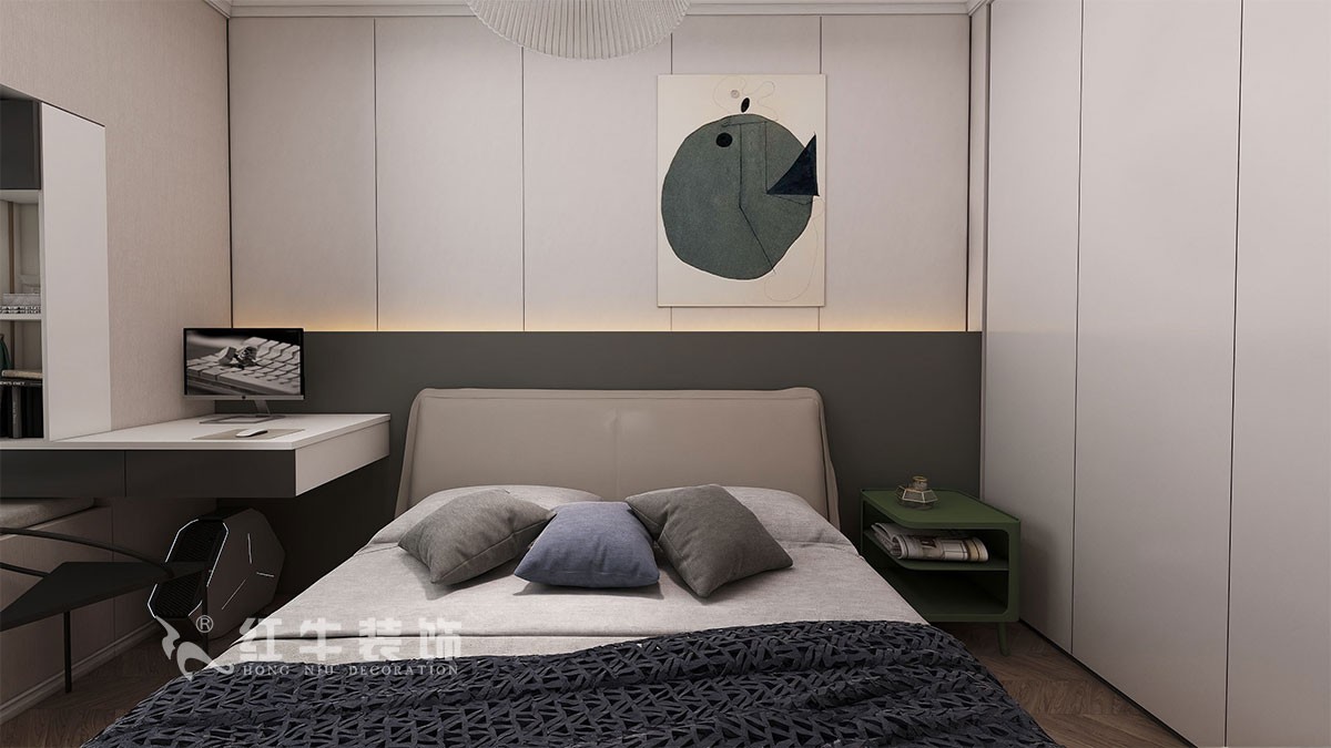 次臥床頭增加衣柜,增大兩側(cè)空間