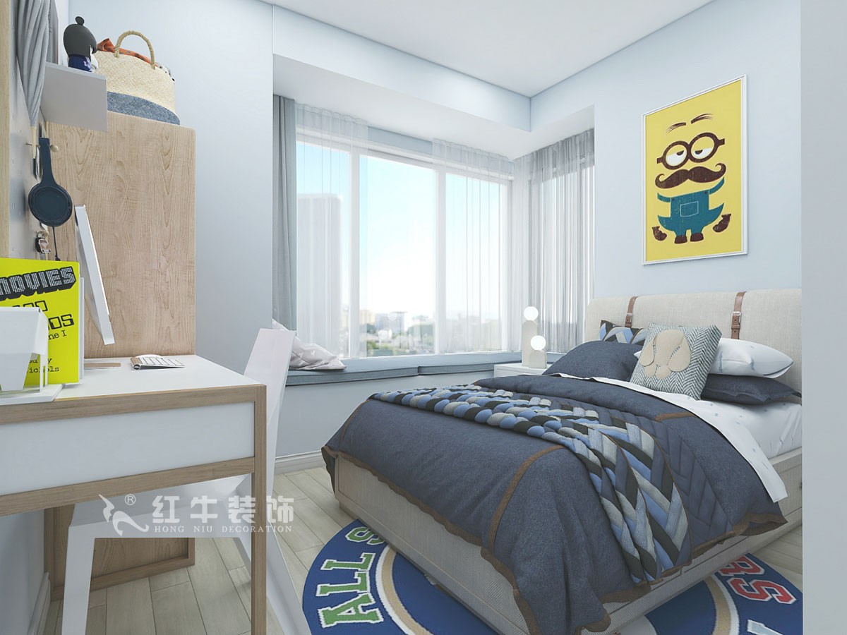 在色系的運(yùn)用上,大部的色調(diào)以淺色作為主色調(diào),稍微用亮色進(jìn)行點(diǎn)綴。從視覺(jué)的角度上來(lái)說(shuō),淺色與深色相比,是一種較為舒適、柔和的色調(diào),再加上少許的亮色點(diǎn)綴,會(huì)使整個(gè)空間既有和諧統(tǒng)一的感覺(jué),又突出了視覺(jué)層次感,給空間增添許多生氣和溫度。